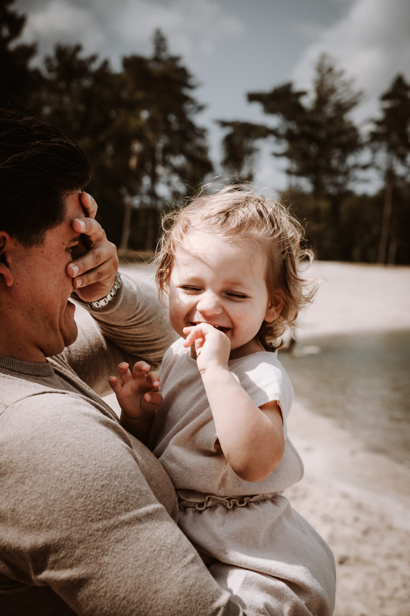 Tijdens een gezinsfotoshoot werk ik op een speelse en ontspannen manier. Ik geef kleine opdrachtjes aan ouders en kinderen, zoals samen wandelen, een knuffel geven, iets in het oor fluisteren of even gek doen.